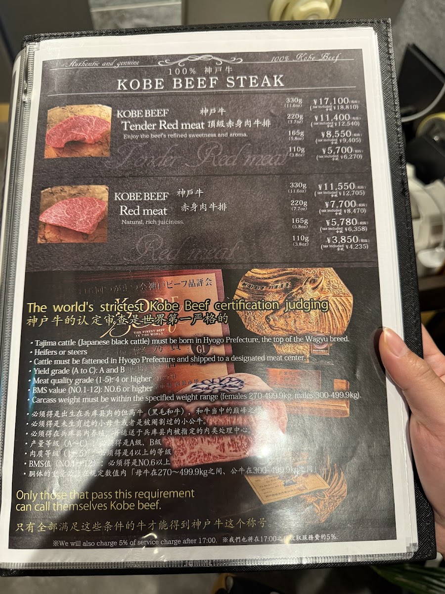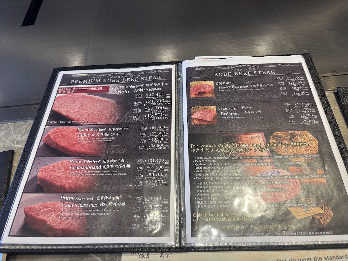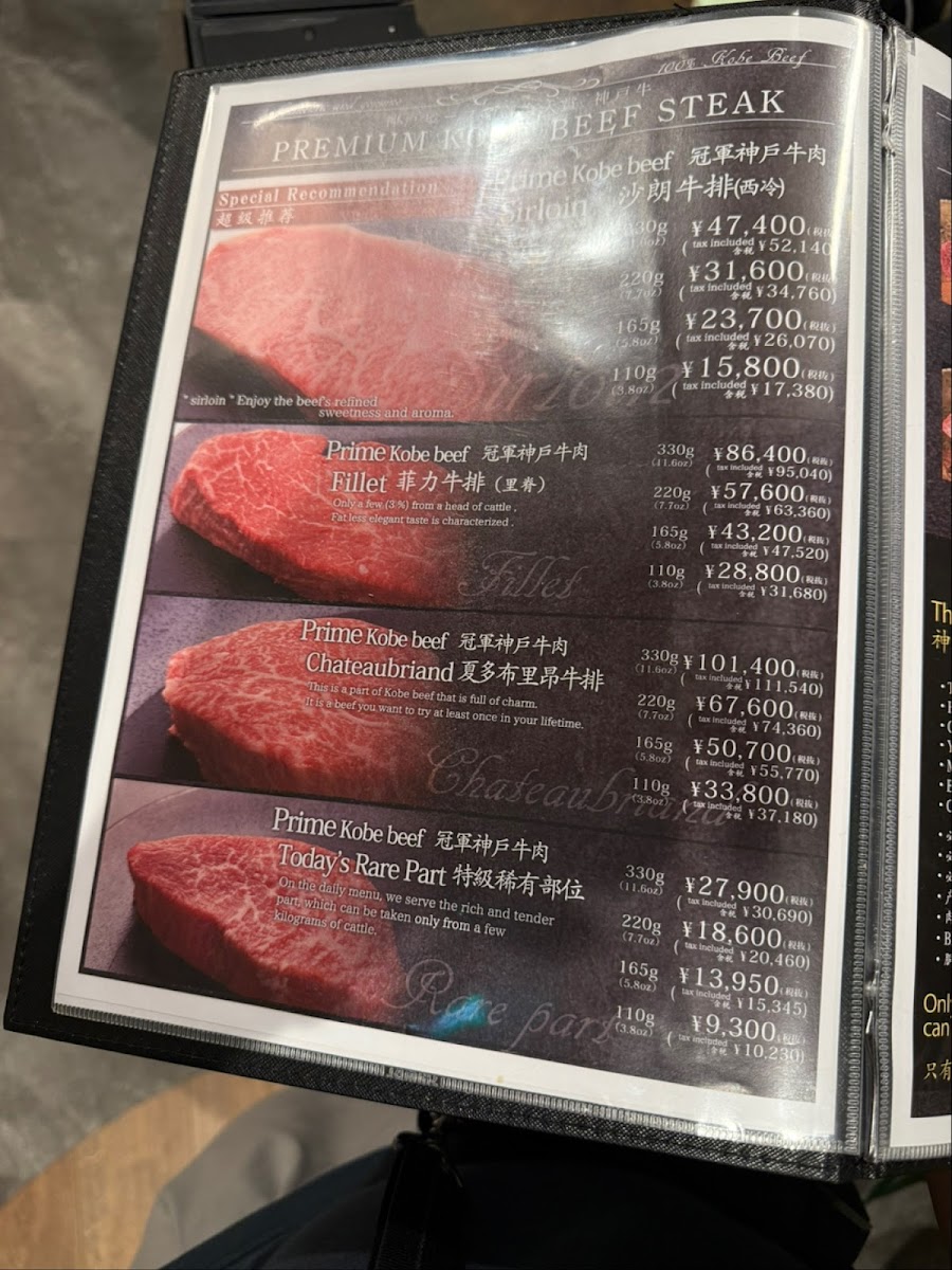 Kobe Beef Amami offers a refined and exclusive dining experience, featuring a carefully curated menu that highlights the premium quality of Kobe beef. The centerpiece of the menu is their Premium Kobe Beef Steak, selected from the finest Tajima cattle, with only the highest quality cuts receiving the “premium” label through a prestigious grading process. Guests can enjoy a variety of steak sizes, including the Premium Kobe Beef Sirloin 110g, Premium Kobe Beef Sirloin 165g, Premium Kobe Beef Sirloin 220g, and Premium Kobe Beef Sirloin 330g. Each cut promises a melt-in-your-mouth experience, showcasing the rich marbling and tenderness Kobe beef is renowned for. The prices for these luxurious dishes reflect their exceptional quality, offering an unforgettable taste of one of Japan’s most coveted meats.